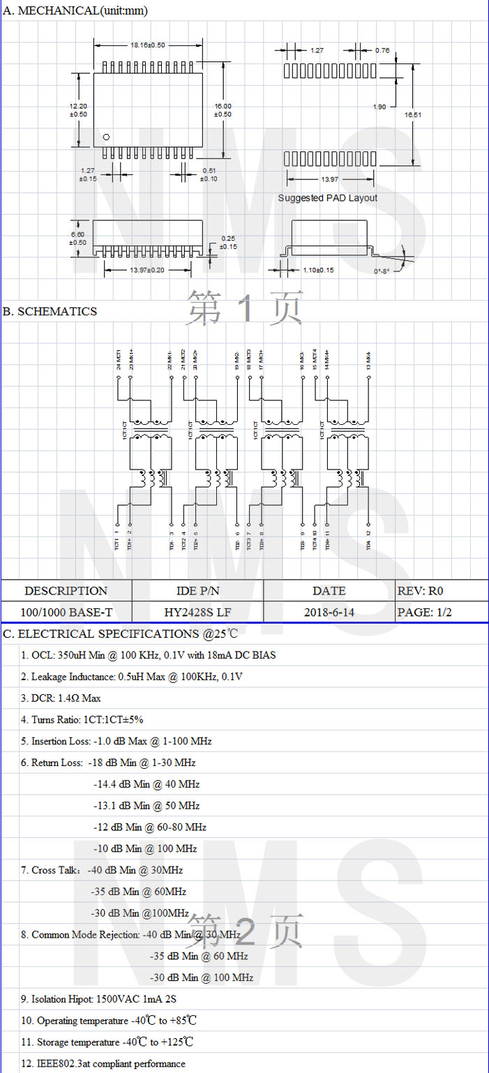 產(chǎn)品備注:SMD HY2428S LF系列